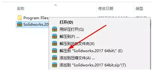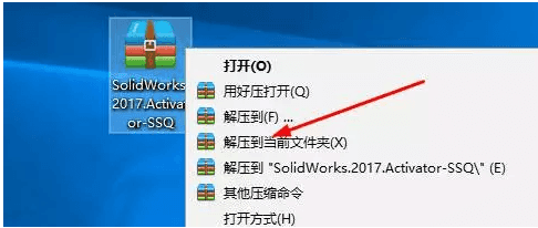 1.断开电脑网络,鼠标右击SolidWorks.2017.Activator-SSQ ,进行解压;