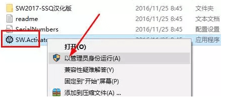 2.打开解压之后的文件夹,鼠标右击SW.Activator,选择以管理员的身份运行;