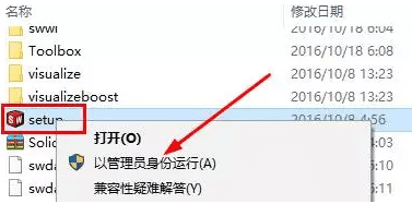 7.鼠标右击setup,选择以管理员的身份运行;