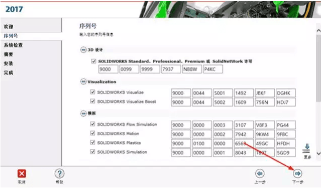 10. 软件自动检测序列号,通过后点击“下一步”;