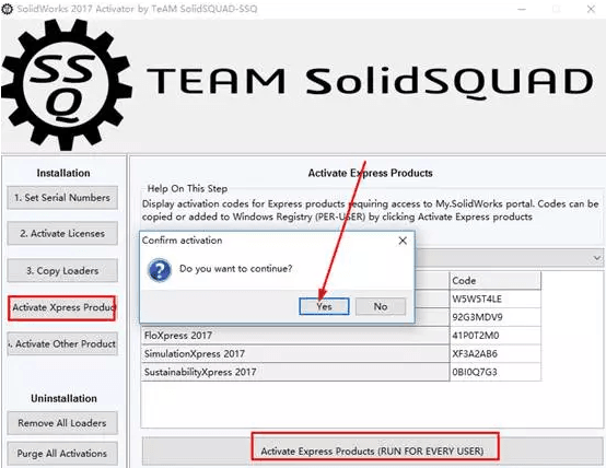16. 点击左侧Activate Xpress Product,然后单击下方的Activate Express Products(RUN FOR EVERY USER),最后点击Yes;